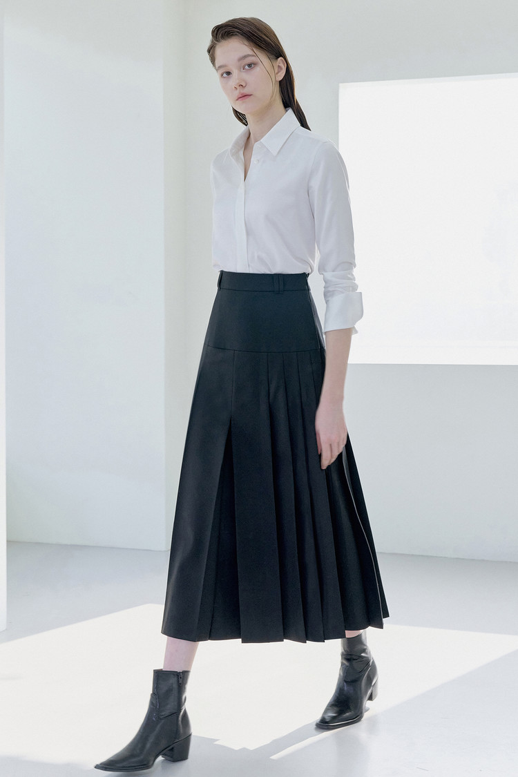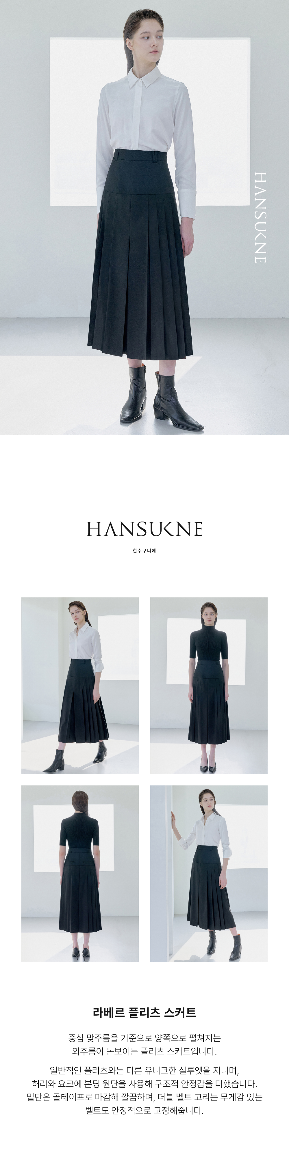 - 중심 맞주름을 기준으로 양쪽 사이드로 펼쳐지는 외주름이 포인트가 되는 플리츠 스커트입니다. 일반적인 플리츠 스커트와는 다르게 유니크함이 더 묻어나는 디자인입니다.