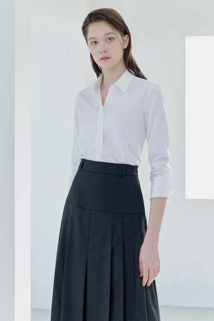 - 부드러운 원단의 세련된 스커트로 페미닌풍의 도회적인 아름다움을 나타내주는 스타일입니다.