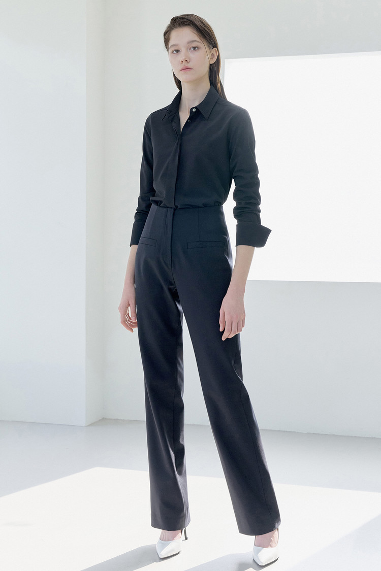 - 유연하게 떨어지는 스트레이트 핏의 팬츠 라인과 하이웨스트 기장감이 바디 프로포션을 살려주는 매력적인 디자인입니다.