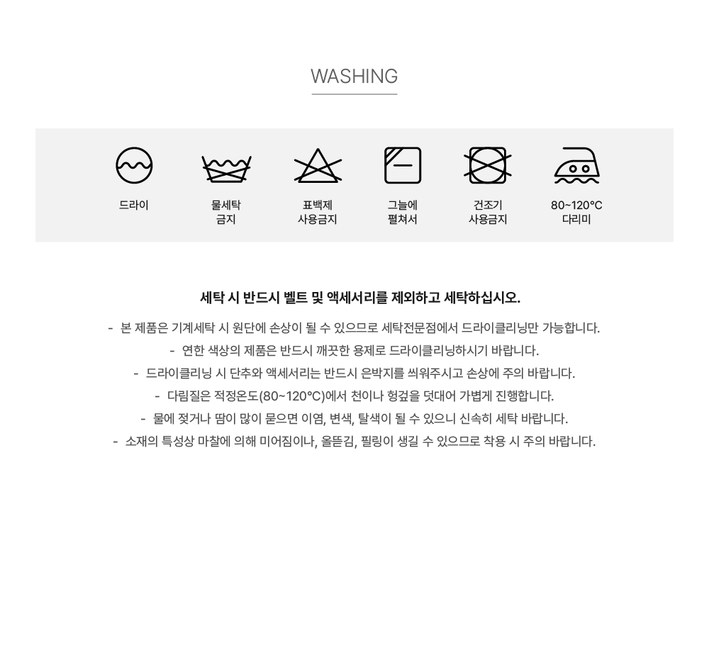 - 트렌디한 아웃핏을 선호하는 고급스러운 이미지로 착용 범위가 넓어 다양한 상의 아이템과 유용하게 매칭이 가능합니다.