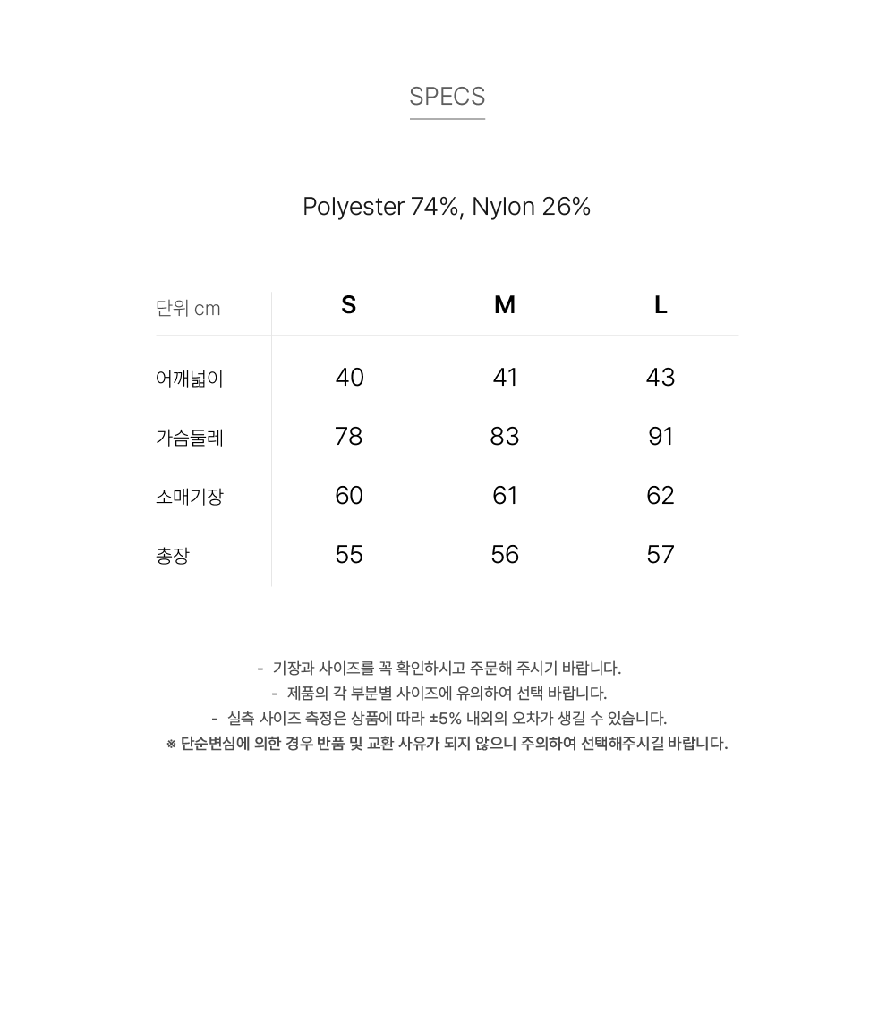 - 어깨 패드가 부담스러우신 분들은 패드를 탈착하여 원하는 실루엣으로 착용할 수 있습니다.
