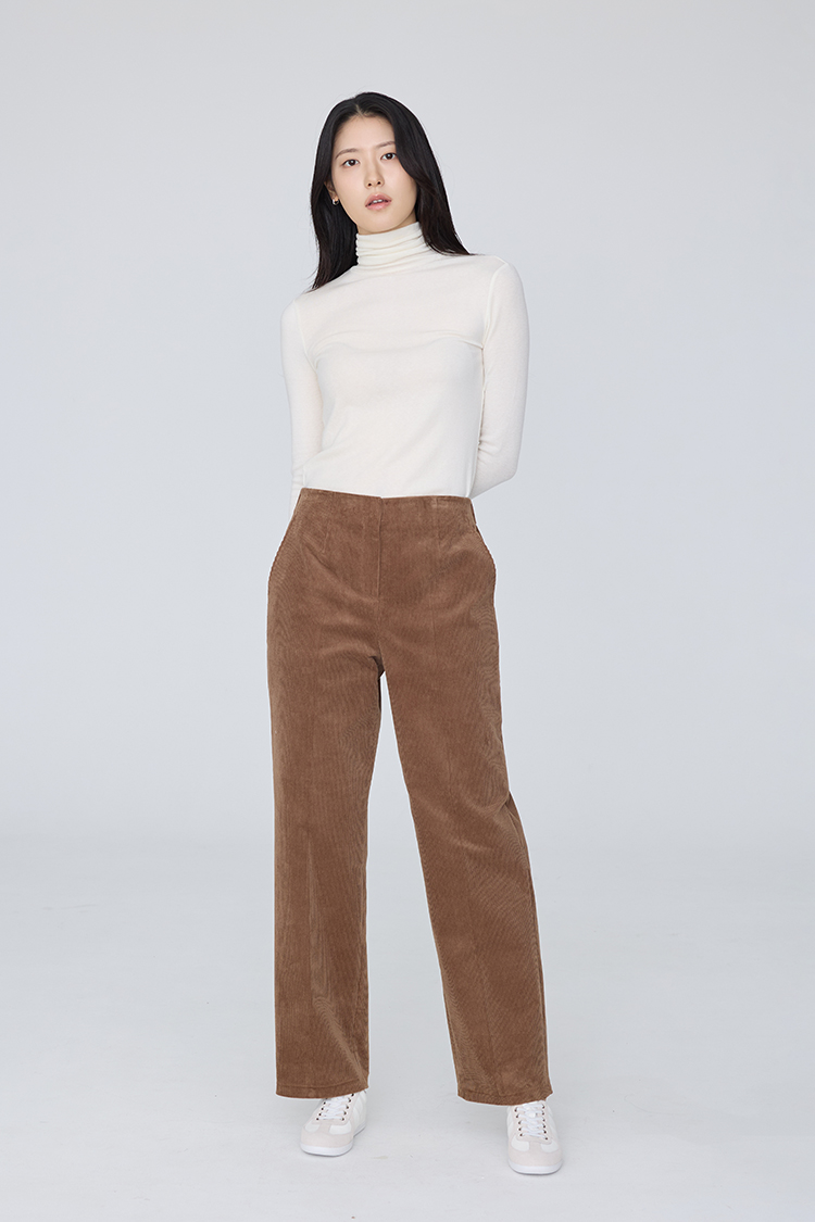 골덴 하이웨스트 밴딩 PT_브라운